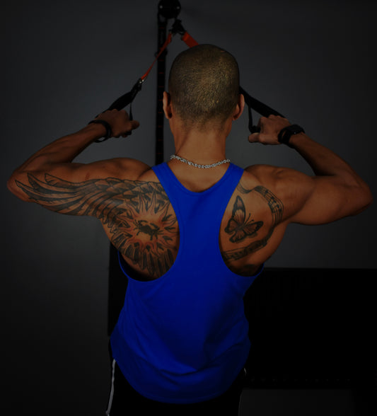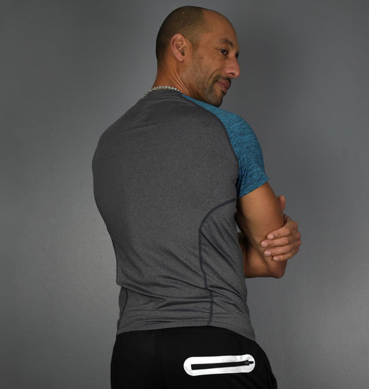 Strength Muscle Fit T-Shirt Grey / Blue - Classic Logo